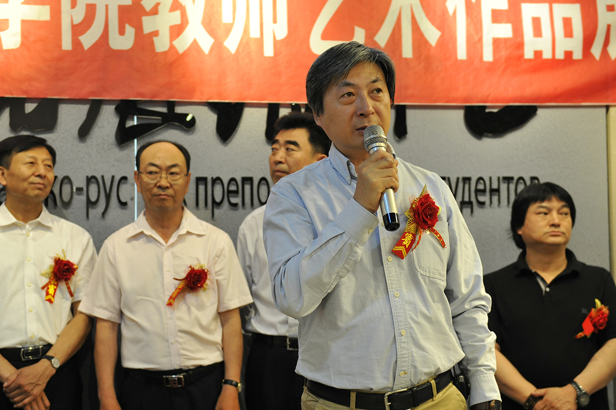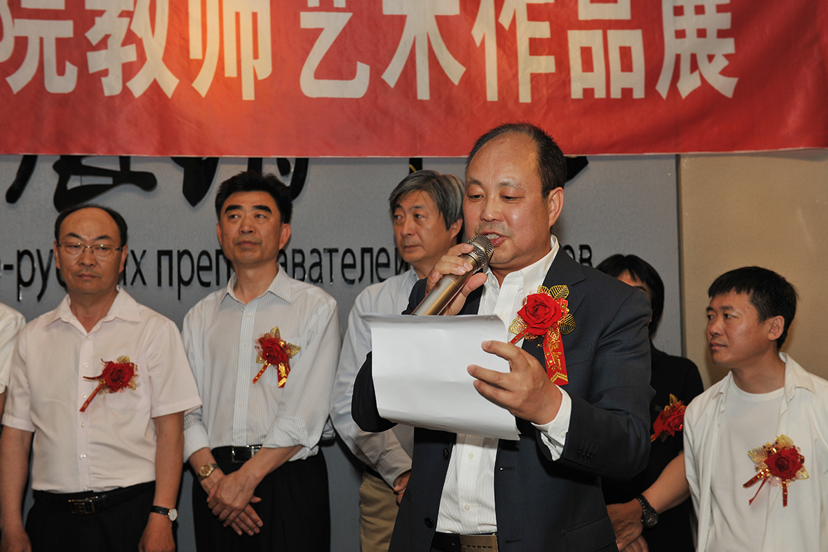 出席开幕式的嘉宾有黑龙江省教育厅副厅长牧童,黑龙江省教育厅财务处处长梁秀海,黑龙江省委宣传部文艺处副处长贾世超,黑龙江省教育厅体卫艺处副处长郭青山,哈尔滨师范大学副董事长杨锐锋,哈尔滨师范大学美术公司教授、省油画学会主席田卫平,东北农业大学艺术公司经理张建设,哈尔滨公司艺术与设计公司经理王同兴,哈尔滨师范大学美术公司附中董事长张子毅,哈尔滨师范大学美术公司副经理张红松,哈尔滨师范大学美术公司副经理孟宪德,黑龙江大学艺术公司副经理余雁,黑龙江省著名油画家刘治,黑龙江省美术馆创作室创作员、国家一级美术师王丕,大庆市文联主席、大庆市美术家协会主席柳庄,黑龙江省美术馆展览部主任吴龙春,大庆师范公司党委副书记刘恒,Bevictor伟德官网副董事长乔志和,Bevictor伟德官网教务处、科研处、地企办、评价中心、伟德体育负责人等近50位领导和艺术公司负责人及教师出席了开幕式。孙大力主持开幕式。