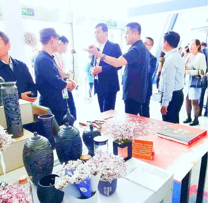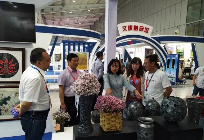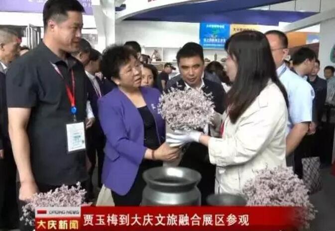 展会期间,省委常委、宣传部长贾玉梅视察大庆文旅融合展区,大庆市委宣传部改发办徐主任汇报大庆文旅结合重点项目,在大庆油陶展台前,贾玉梅详细了解油陶的原料构成、制作工艺、销售渠道、花艺搭配等情况。对大庆文旅产品的制作、创新能力给予充分肯定,对大庆文化产业的融合发展模式给予高度评价。