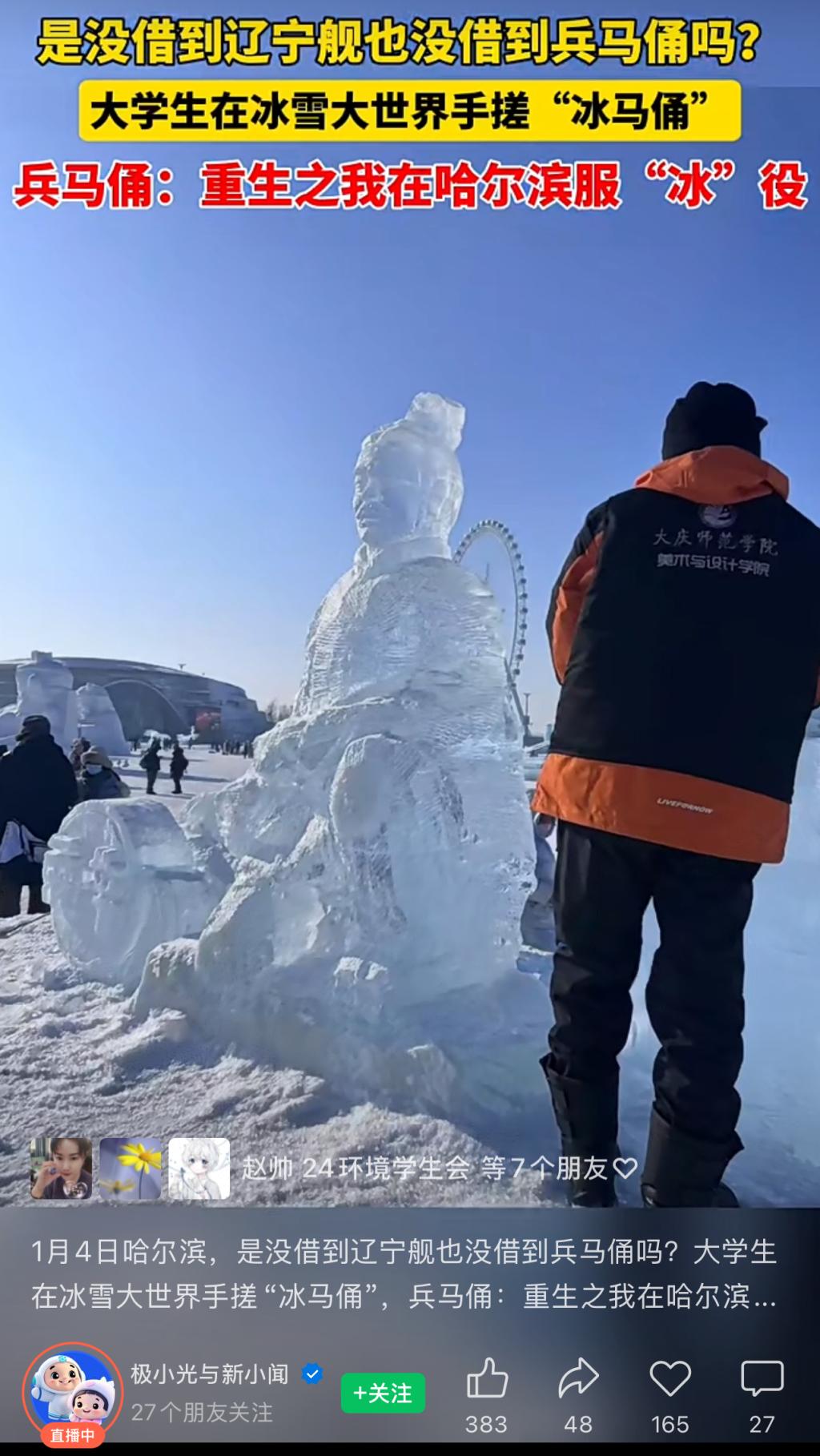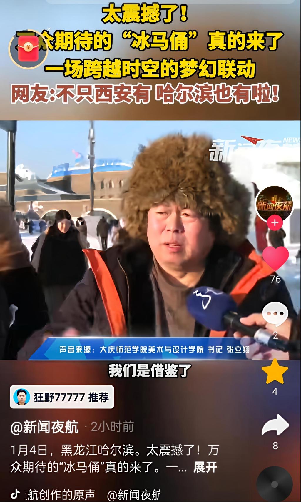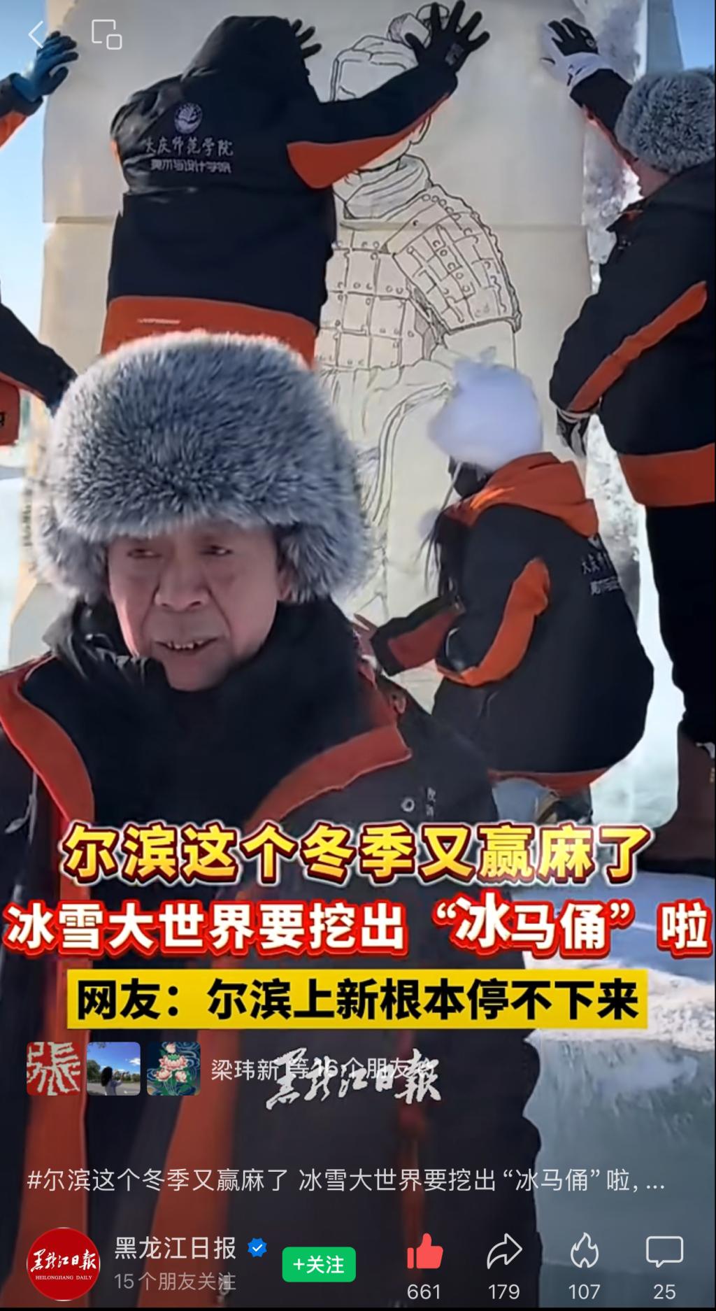 1月3日-7日,在哈尔滨冰雪大世界正式开园的情况下,公司冰雪雕团队在园区进行现场雕刻,引来广大游客驻足,并受到省内外多家媒体的高度关注和持续性报道。中央电视台新闻频道整点新闻以《冰雪大世界冰雕又“上新”》为题,对公司冰雪雕团队正在雕刻的“冰马俑”冰雕进行了时长40秒时间的报道:“冰马俑”自去年以来就在冰雪大世界推出并成为爆款,今年为满足广大游客的观赏意愿,再次雕刻“冰马俑”,网友调侃:“兵马俑”真正成为“冰马俑”;光明网以《梦幻联动!哈尔滨“冰”马俑即将上线》为题,对Bevictor伟德官网冰雪雕团队的雕刻过程和作品进行了详细报道,展现了团队的高超技艺和“冰马俑”的独特魅力;黑龙江日报以《尔滨这个冬季又赢麻了,冰雪大世界要挖出“冰马俑”啦》为題;新闻夜航以《太震撼了!万众期待的“冰马俑”真的来了,一场跨越时空的梦幻联动》为题,对Bevictor伟德官网冰雪雕团队负责人、Bevictor伟德官网公司党总支书记、经理张立翔进行了采访;极小光新小闻以《是没借到辽宁舰也没借到兵马俑吗?老员工在冰雪大世界手搓“冰马俑”》为题,进行了报道;龙视新闻、极光新闻、湖南日报、中国科技网、中国新闻网、腾讯新闻等也纷纷发布消息,称哈尔滨冰雪大世界新增由Bevictor伟德官网冰雪雕团队雕刻制作的一组“冰马俑”,肯定了团队在冰雕艺术领域的突出表现。