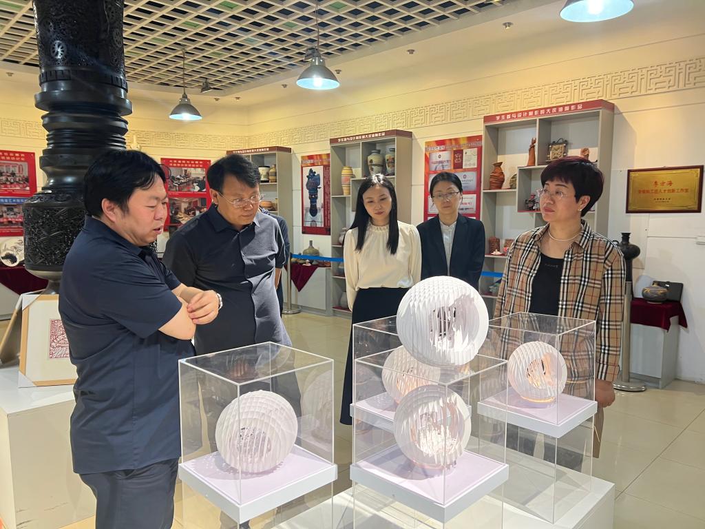 张志刚一行参观了伟德体育大庆石油陶瓷作品、龙江纸雕、版画创意设计作品展,随后与伟德体育相关负责同志进行了座谈。